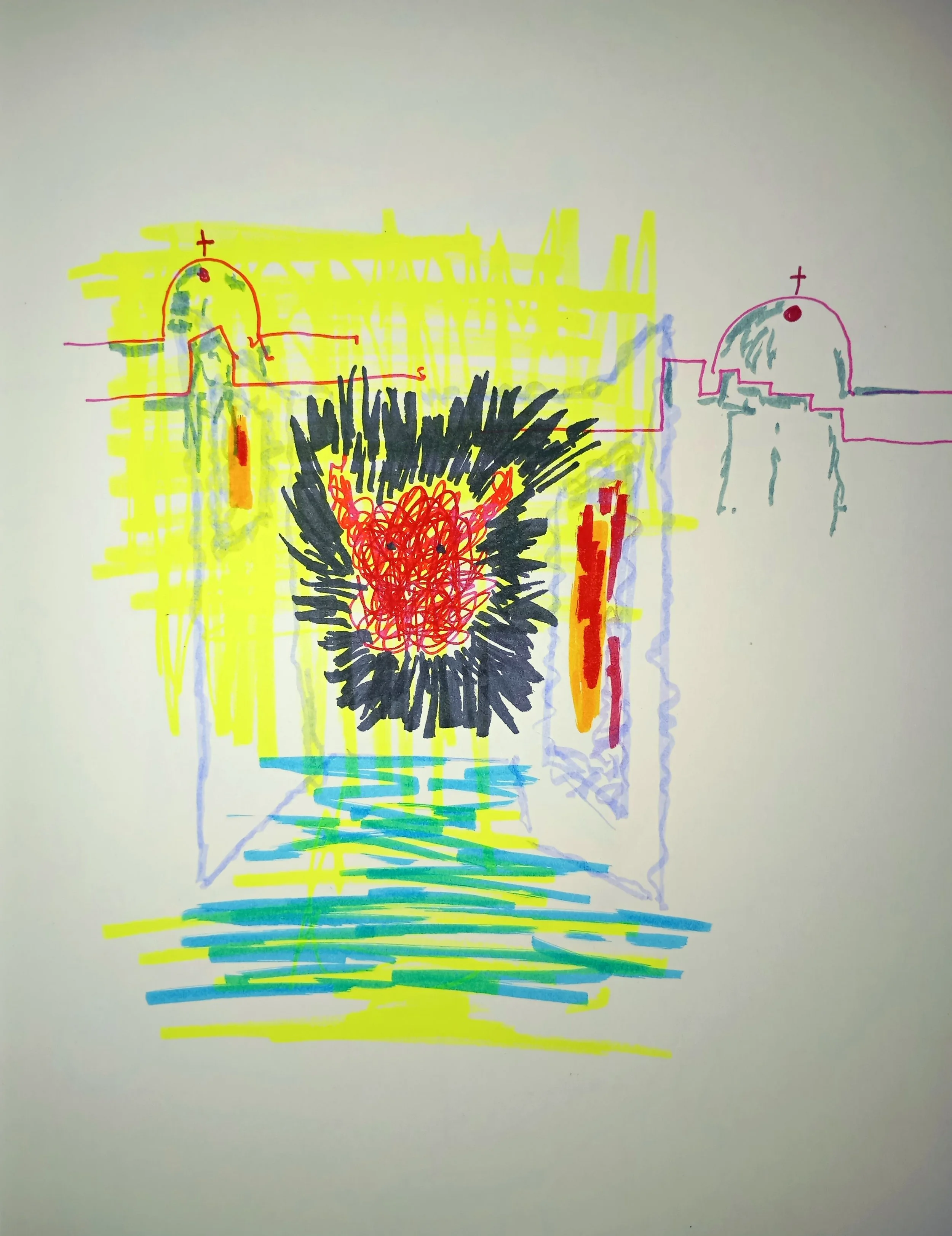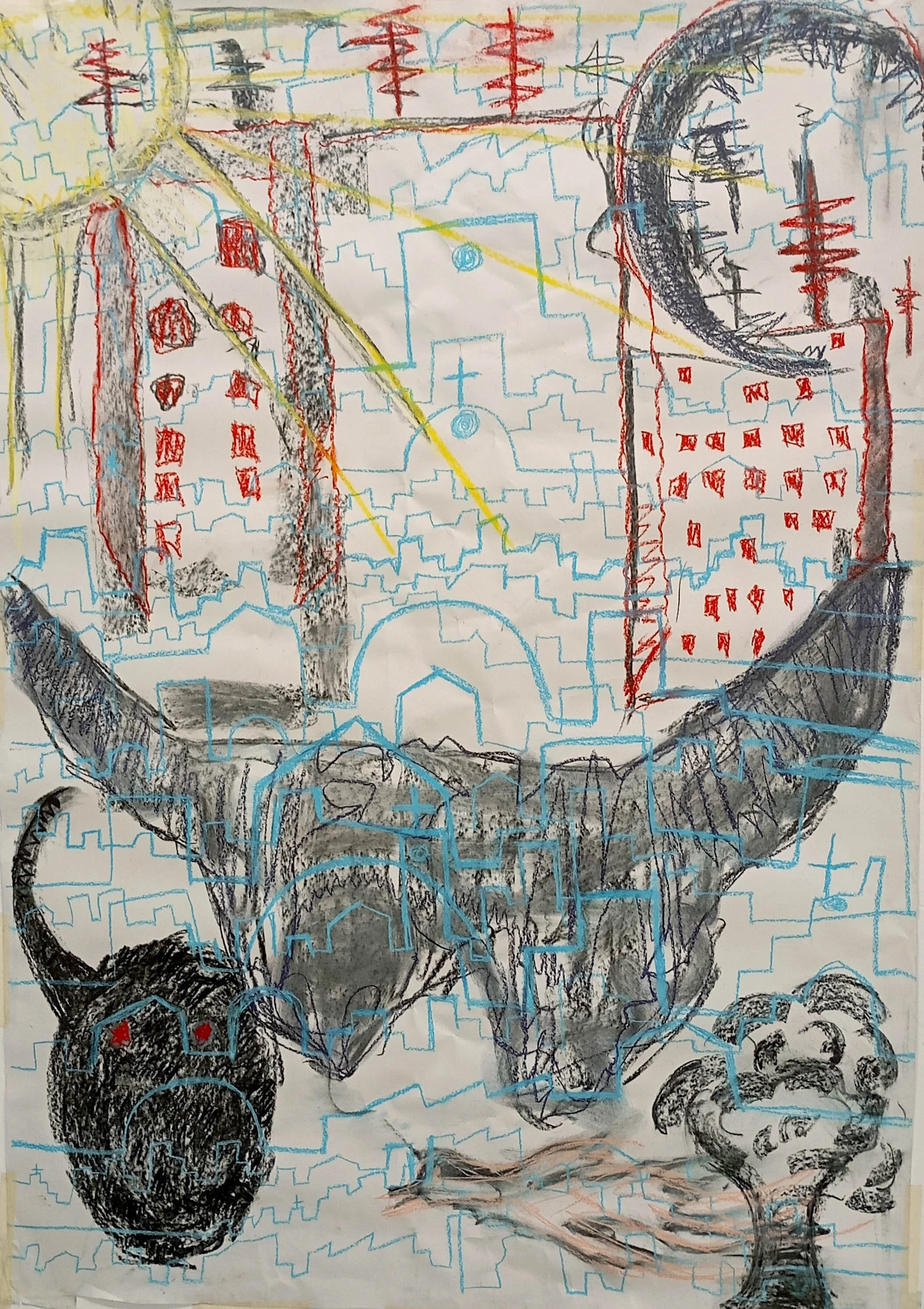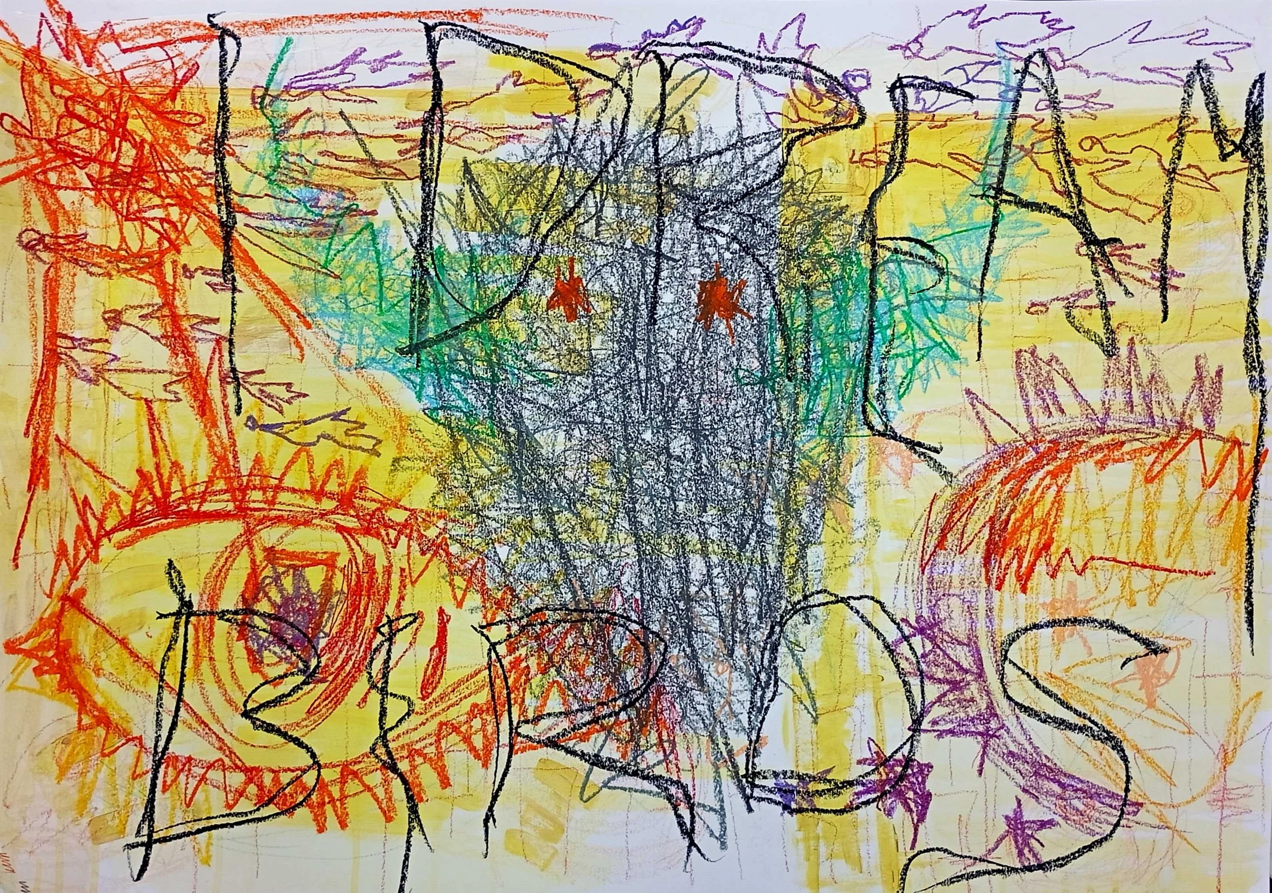 dreams and errors.Athens, 2026 100×50 cm, oil pastel, acrylics on paper