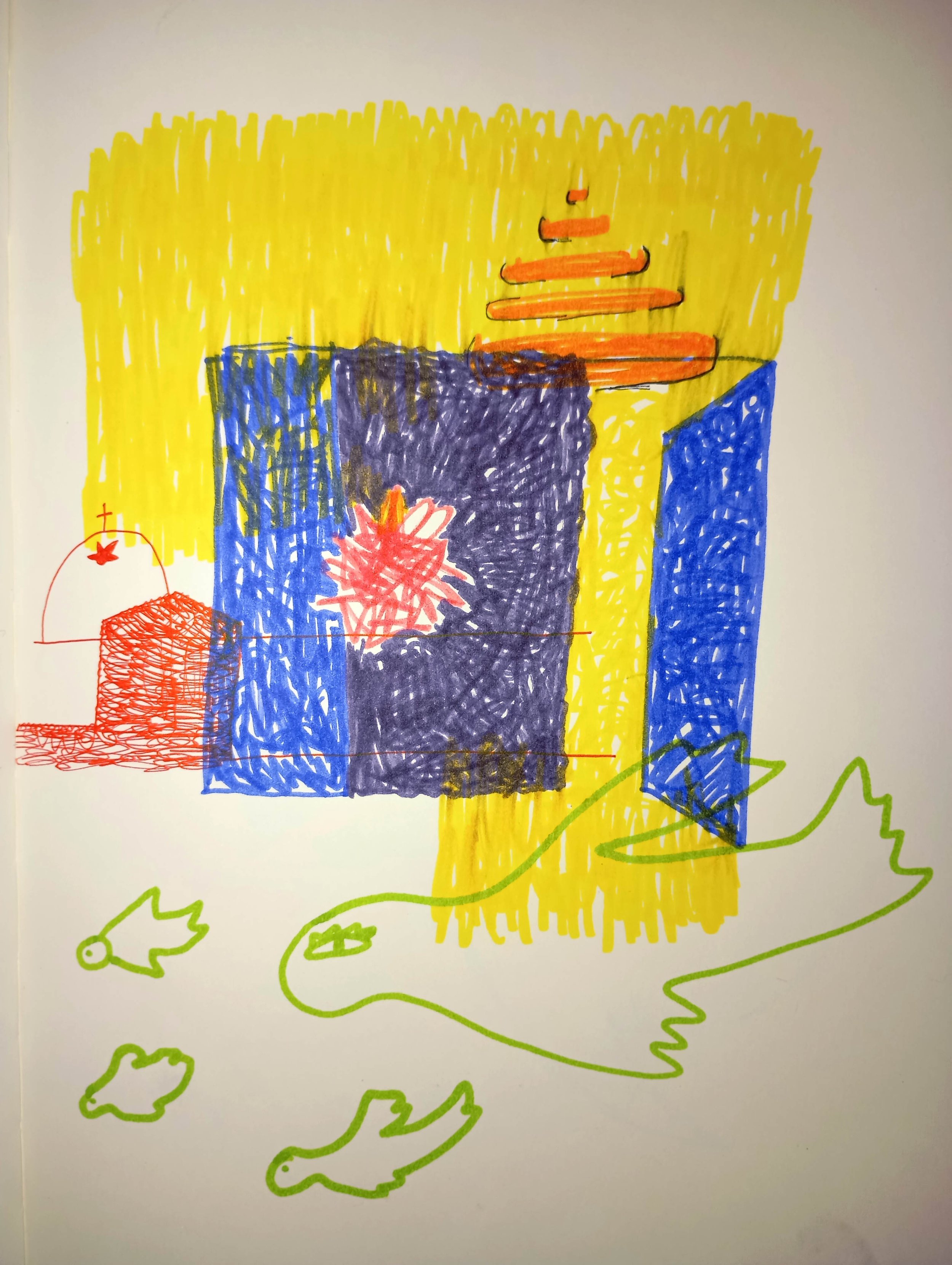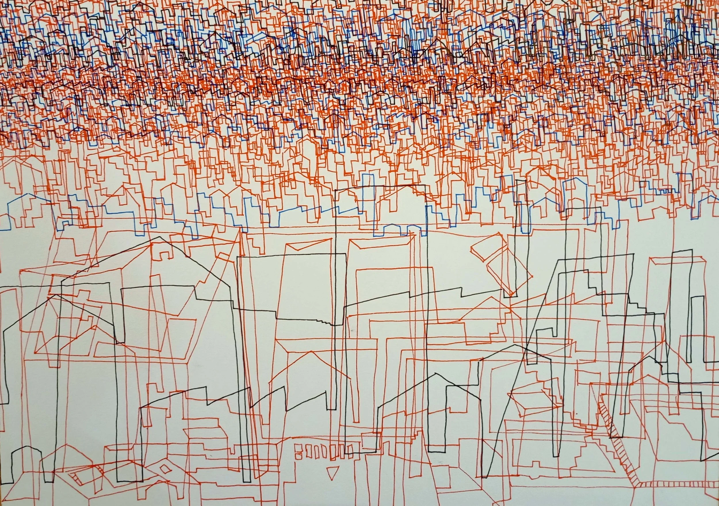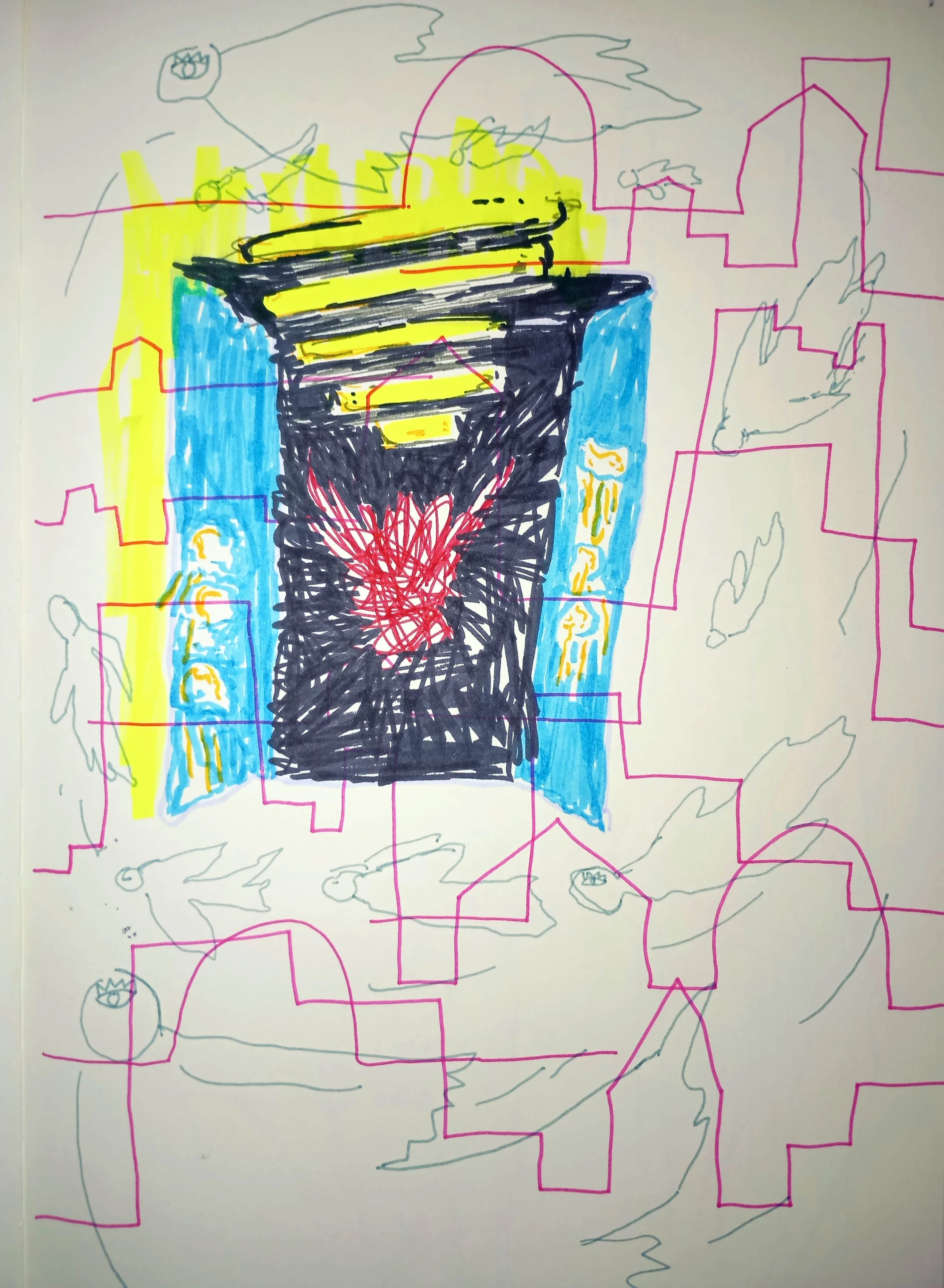 dreams and errors.Athens, 2026 100×50 cm, oil pastel, acrylics on paper